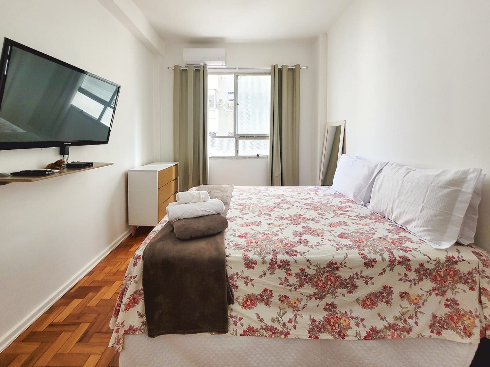 Cozy, renovated apartment, with a great location and 100m from Leme and Copacabana beaches. Apartment equipped for families and/or groups of friends. Ideal for long stays or to enjoy a few days in one of the coolest neighborhoods in Rio de Janeiro. Perfect for resting, beautiful, comfortable, peaceful, well located...ideal place for a stay in the wonderful city.