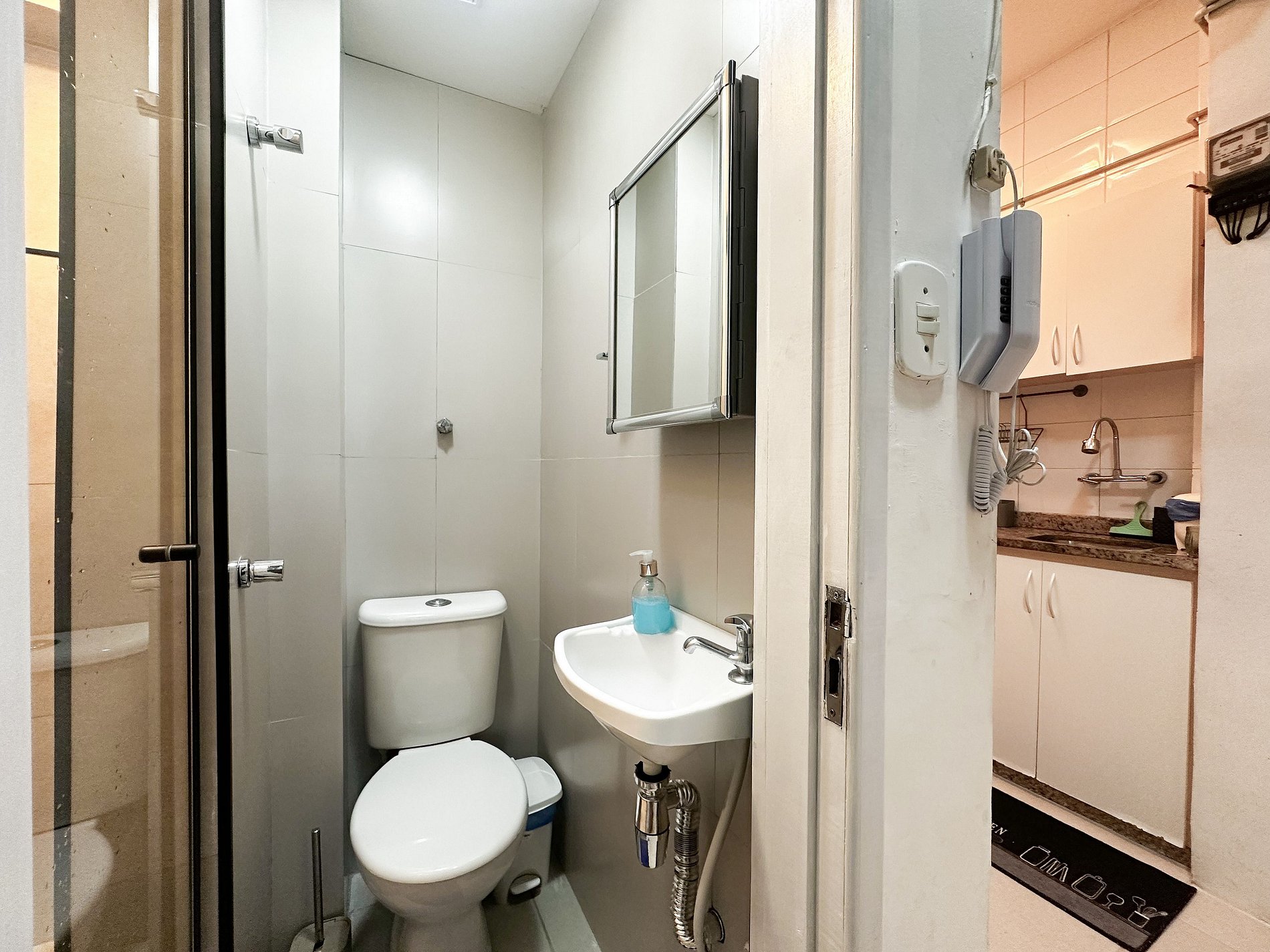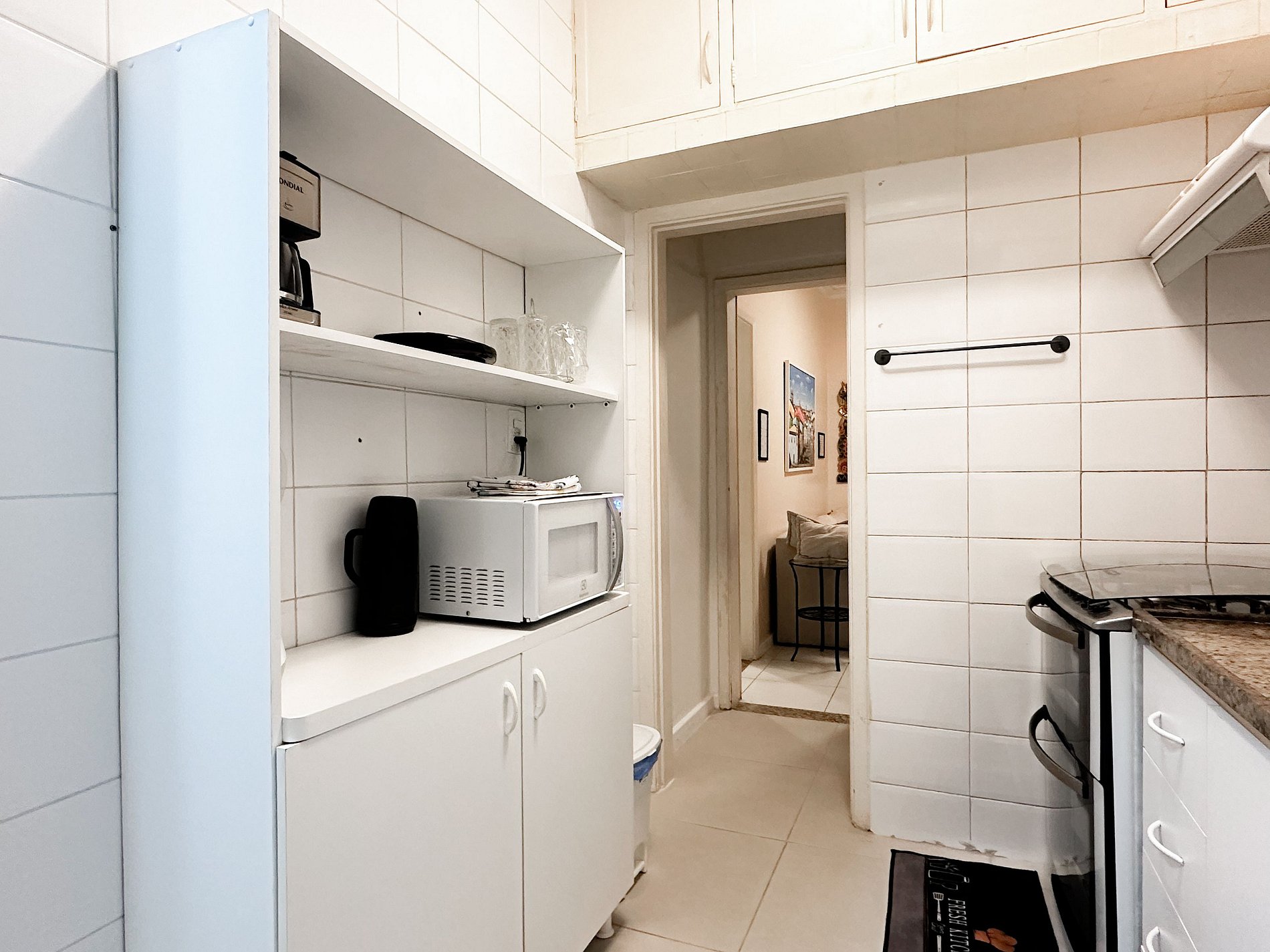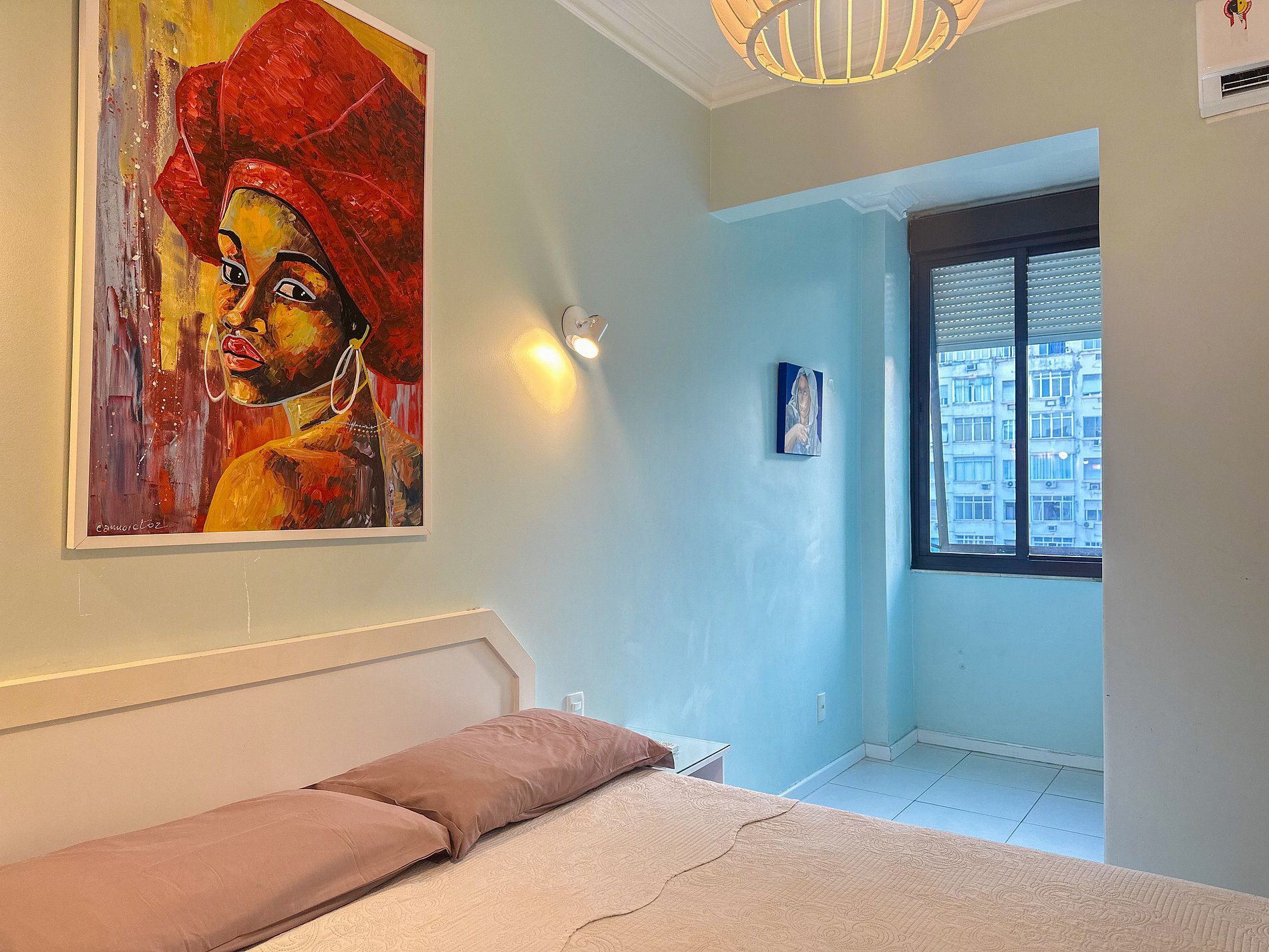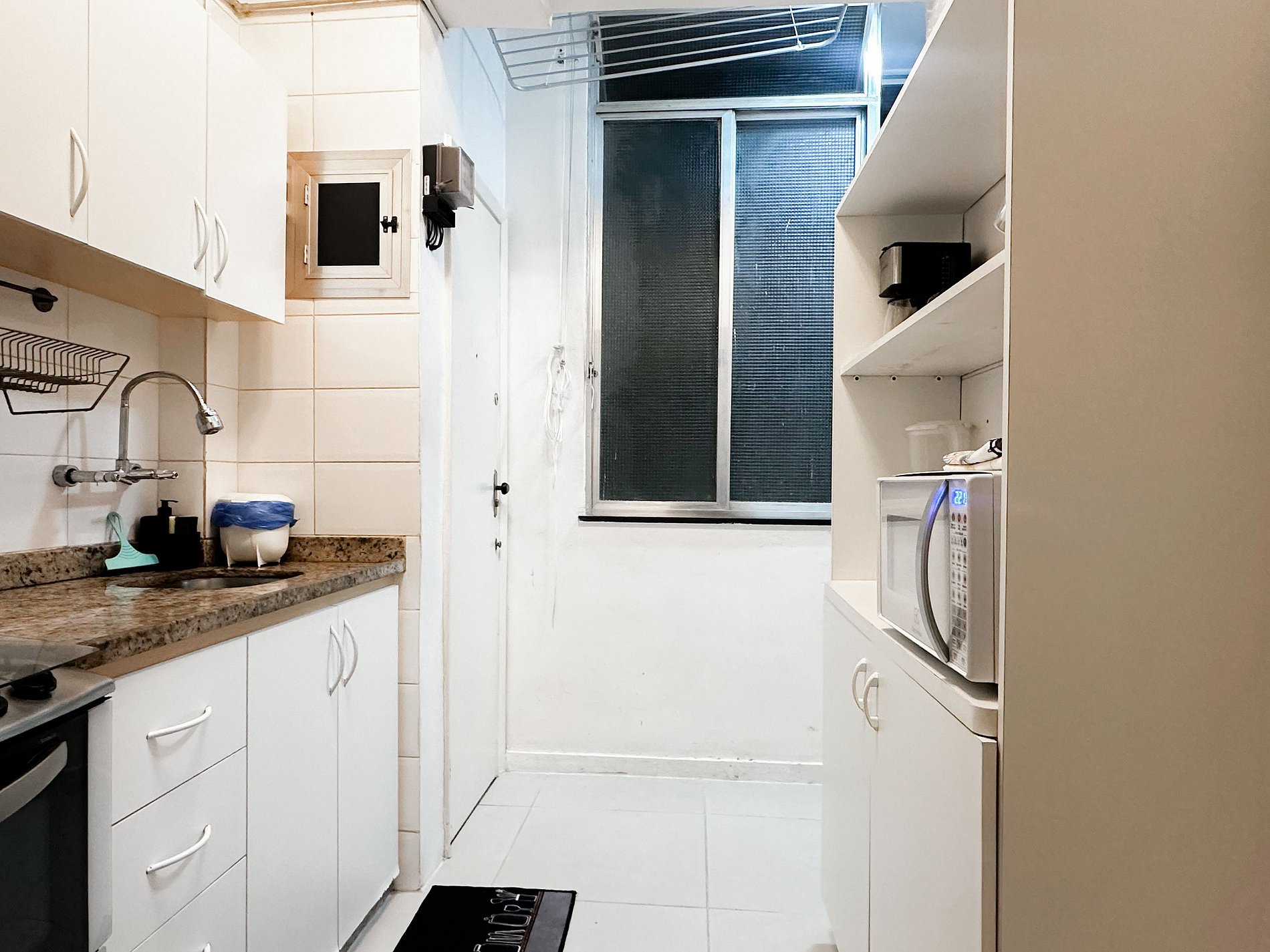Tem capacidade para até 6 pessoas .Na sala, há uma TV Smart de 50’. No quarto, uma TV Smart de 43’. A sala também conta com uma mesa com 6 cadeiras e um sofá-cama de casal. A geladeira é nova e de inox.A cozinha está equipada com liquidificador, sanduicheira, cafeteira e utensílios para cozinhar. Todos os quartos e a sala possuem ar condicionado split, além de janelas acústicas antirruído e venezianas (blackout).O apartamento possui um banheiro social completo e uma suíte.