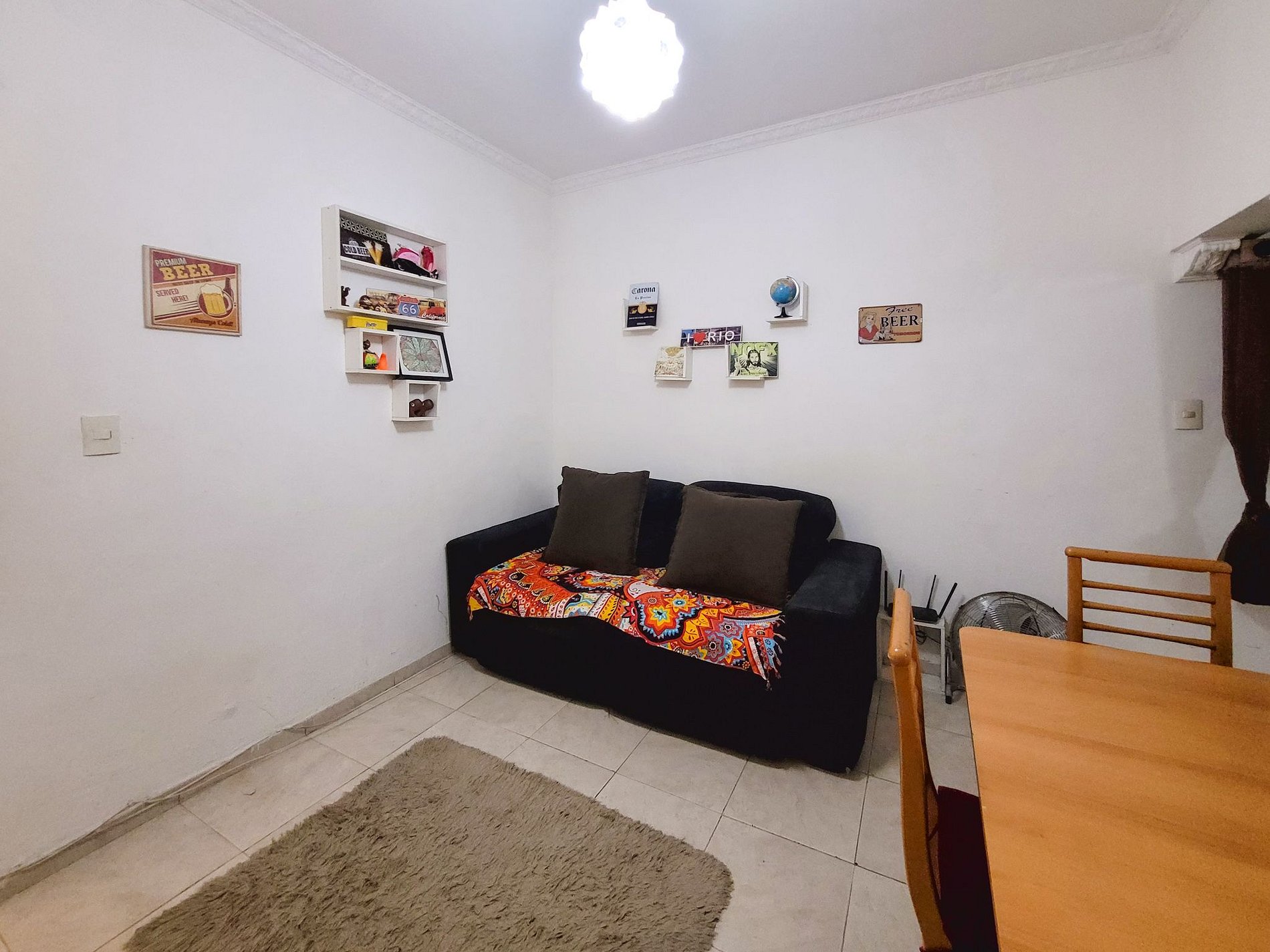 En la sala tiene un sofá, una mesa con 3 sillas (+ otras 2 de plástico). Tv, Wi-Fi.