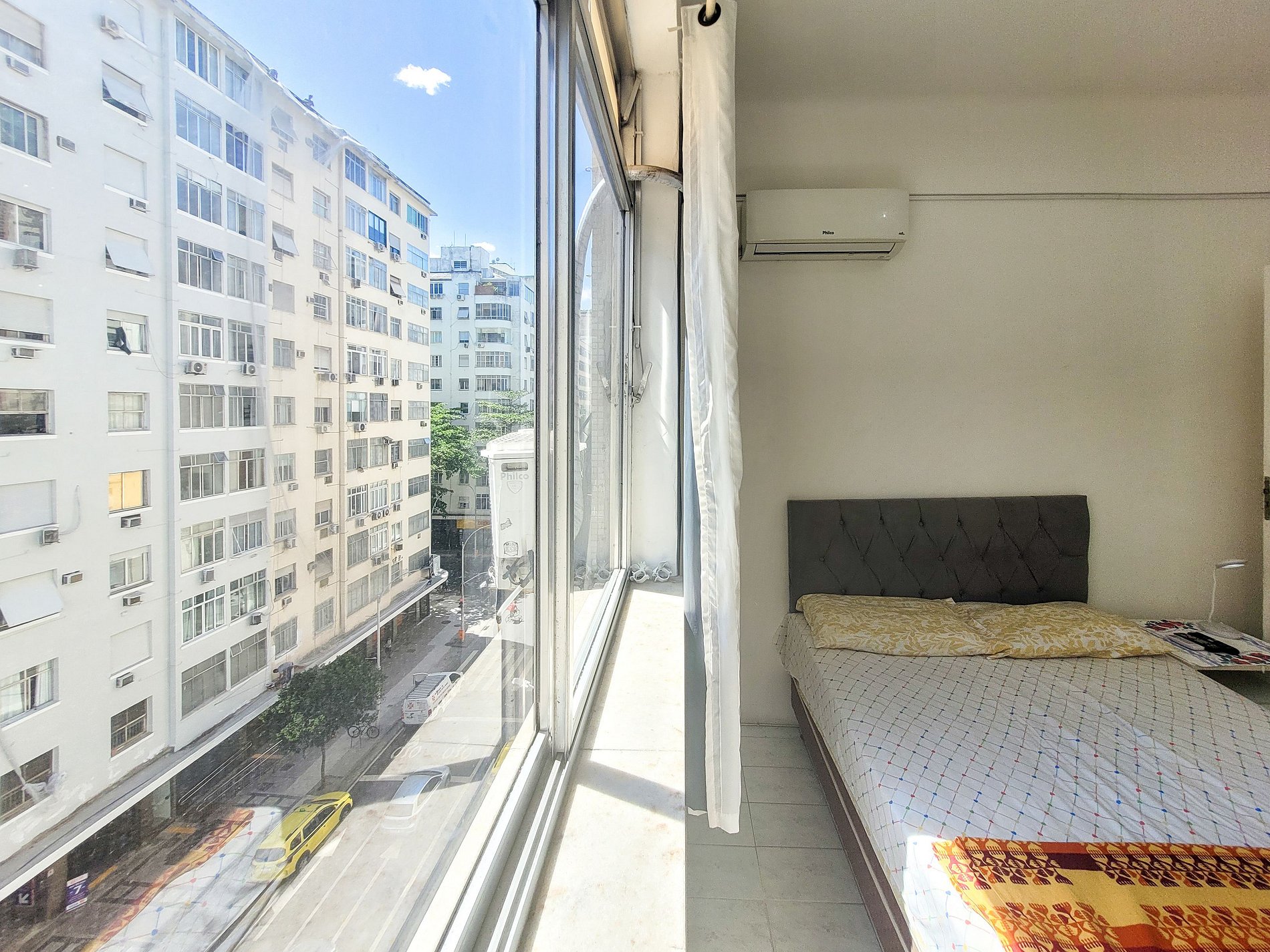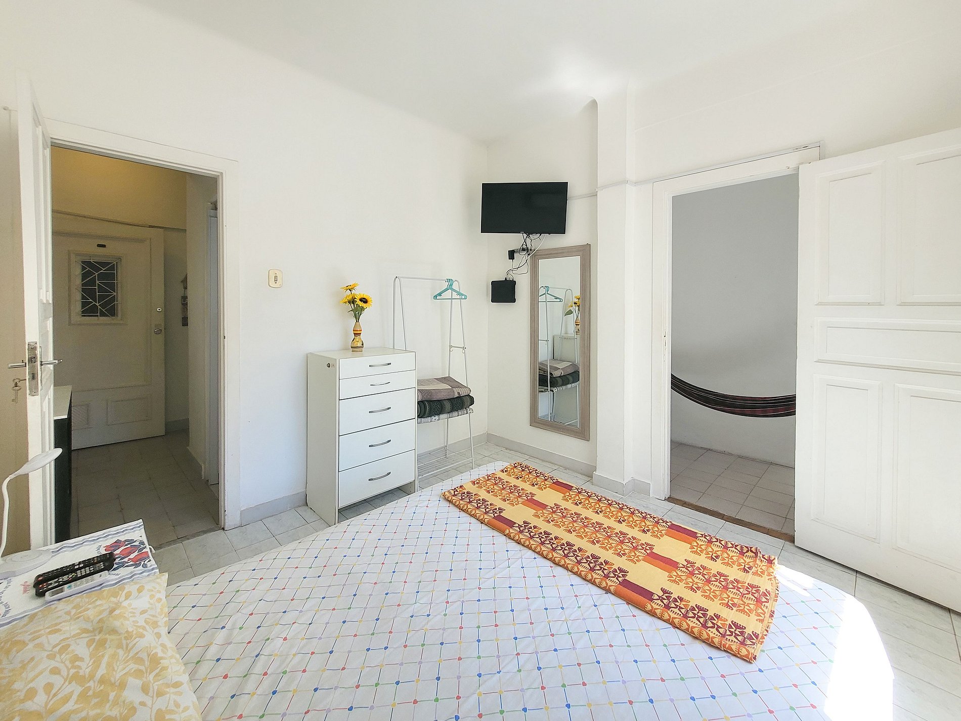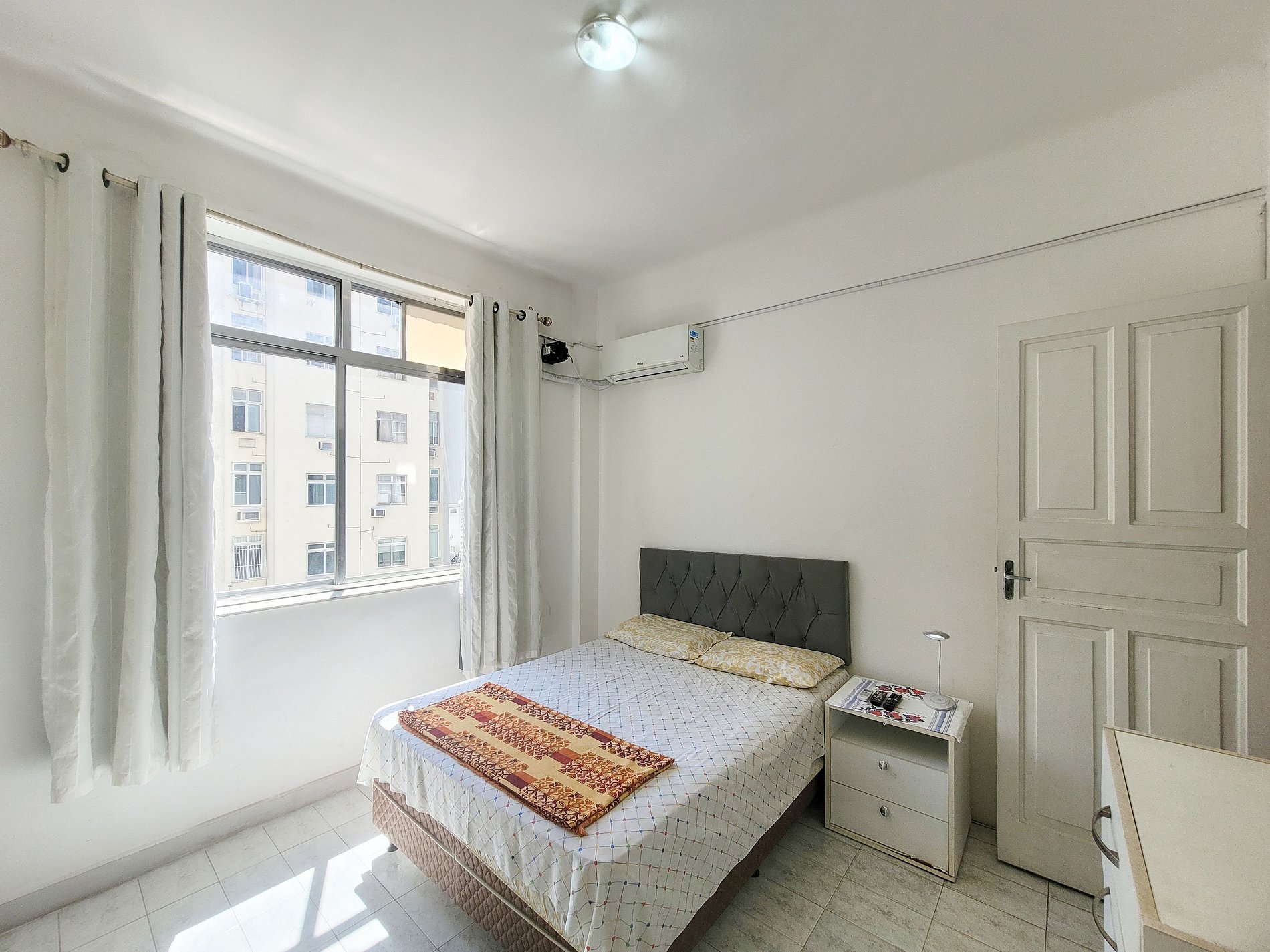 Um apartamento simples, bonito e arejado no Posto 6 de Copacabana traz uma atmosfera aconchegante e prática. O quarto é iluminado, com janelas grandes que permitem a entrada de muita luz natural e uma boa circulação de ar. Com móveis básicos e confortáveis, focando no essencial para um ambiente funcional e acolhedor. A cozinha é compacta e prática, com armários simples. Esse é o tipo de apartamento perfeito para quem busca viver em Copacabana com conforto e praticidade, sem excessos.