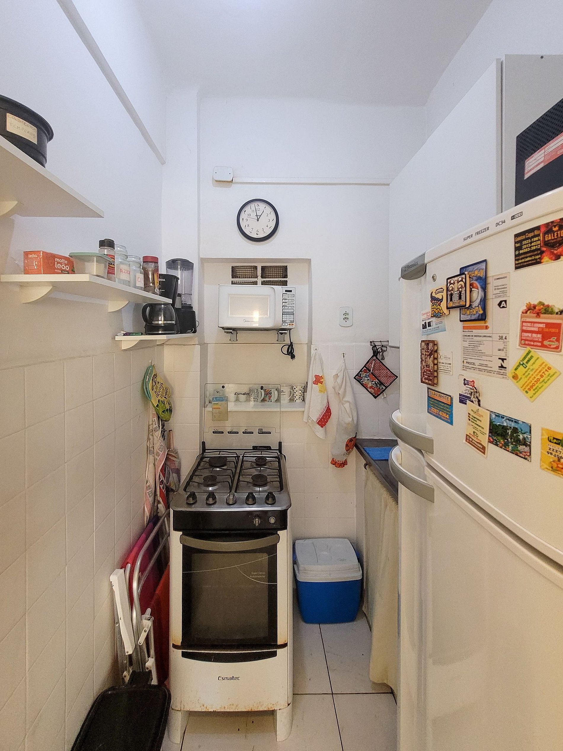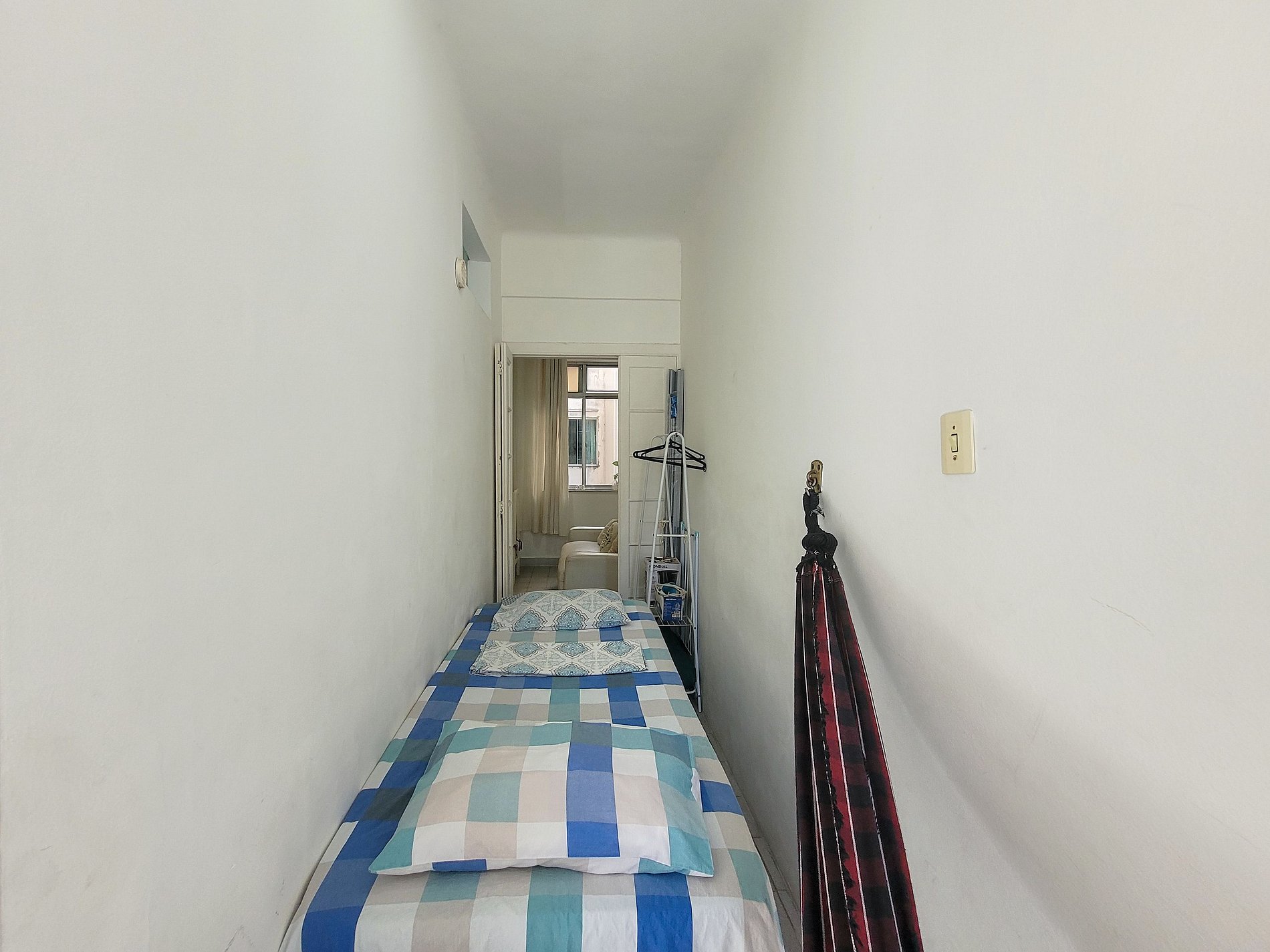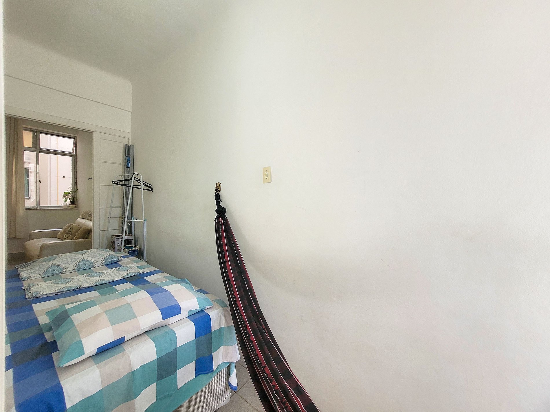 Um apartamento simples, bonito e arejado no Posto 6 de Copacabana traz uma atmosfera aconchegante e prática. O quarto é iluminado, com janelas grandes que permitem a entrada de muita luz natural e uma boa circulação de ar. Com móveis básicos e confortáveis, focando no essencial para um ambiente funcional e acolhedor. A cozinha é compacta e prática, com armários simples. Esse é o tipo de apartamento perfeito para quem busca viver em Copacabana com conforto e praticidade, sem excessos.