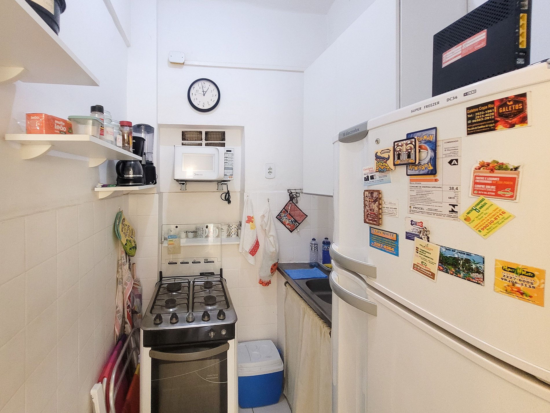 Um apartamento simples, bonito e arejado no Posto 6 de Copacabana traz uma atmosfera aconchegante e prática. O quarto é iluminado, com janelas grandes que permitem a entrada de muita luz natural e uma boa circulação de ar. Com móveis básicos e confortáveis, focando no essencial para um ambiente funcional e acolhedor. A cozinha é compacta e prática, com armários simples. Esse é o tipo de apartamento perfeito para quem busca viver em Copacabana com conforto e praticidade, sem excessos.