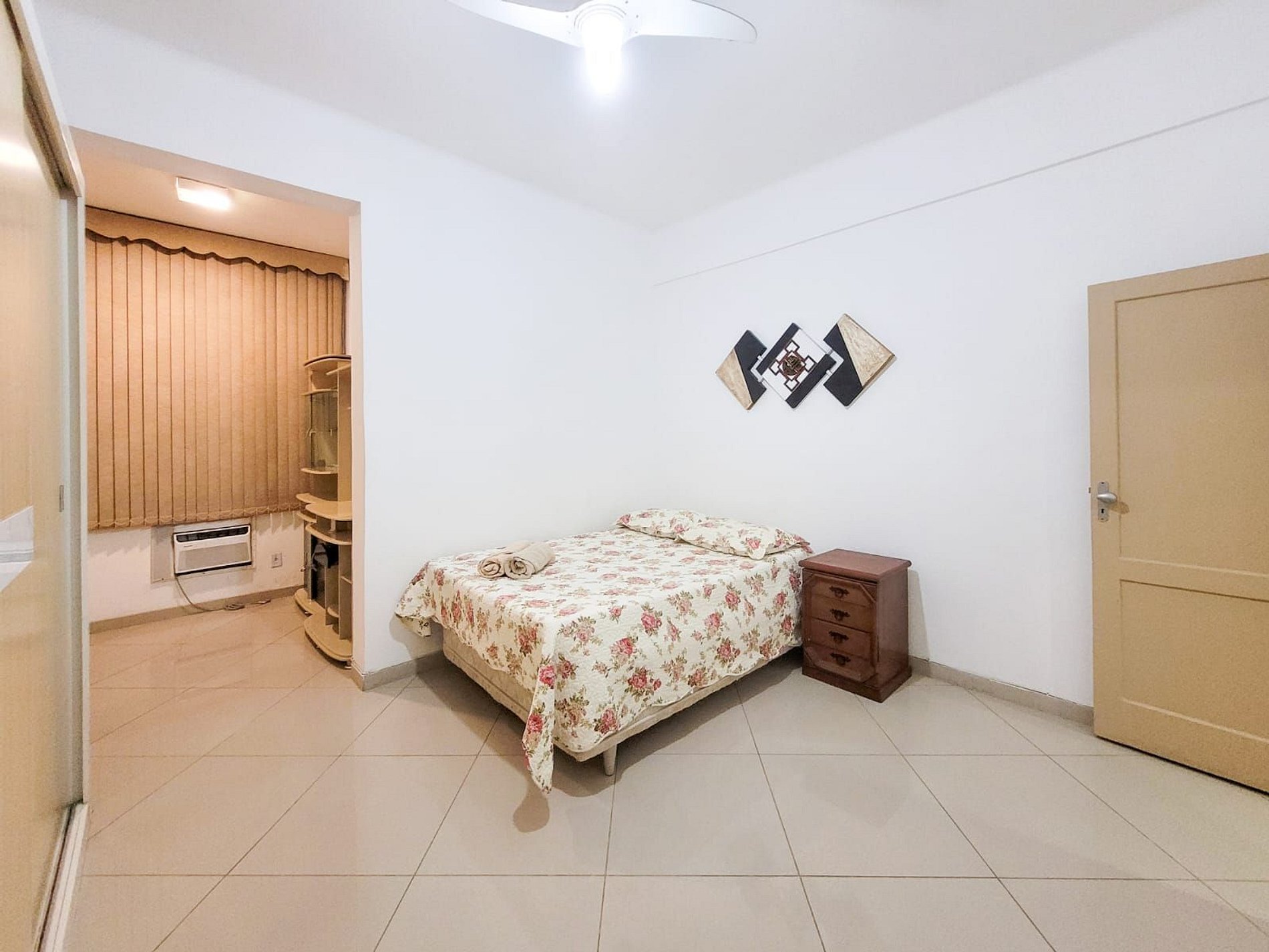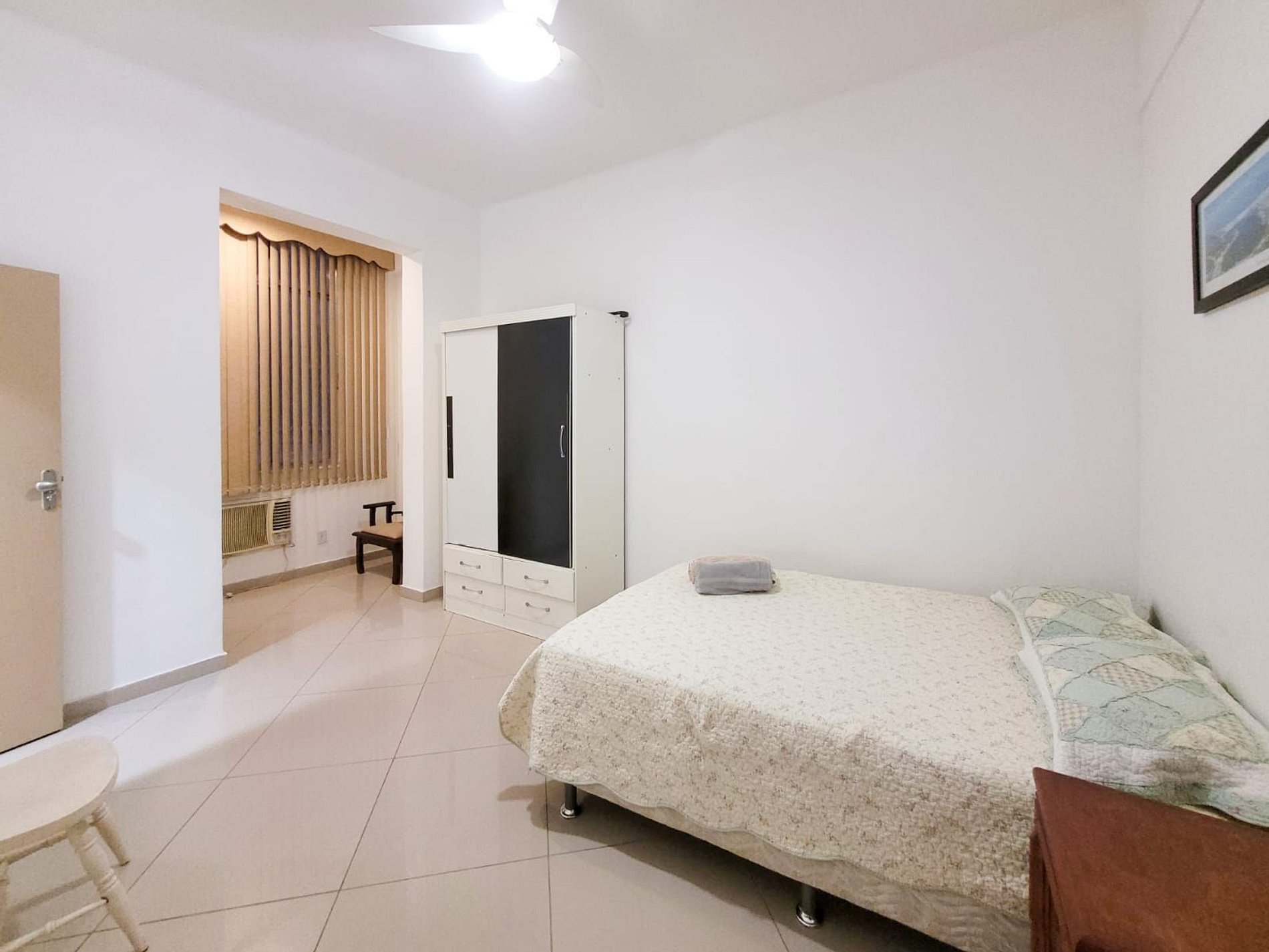 Segundo quarto com cama de casal e ar-condicionado.