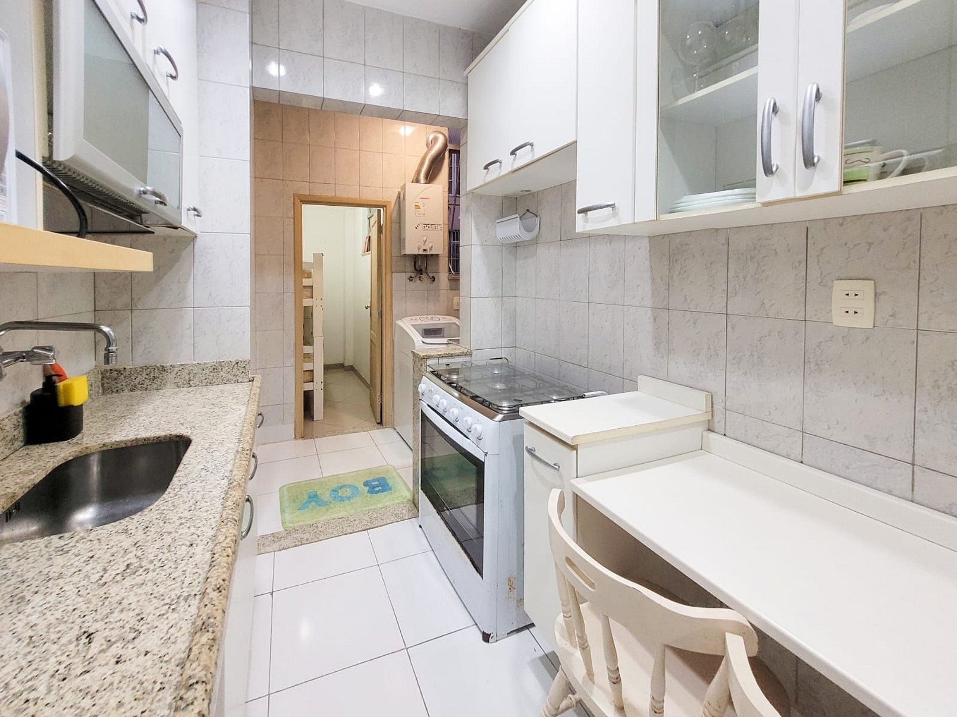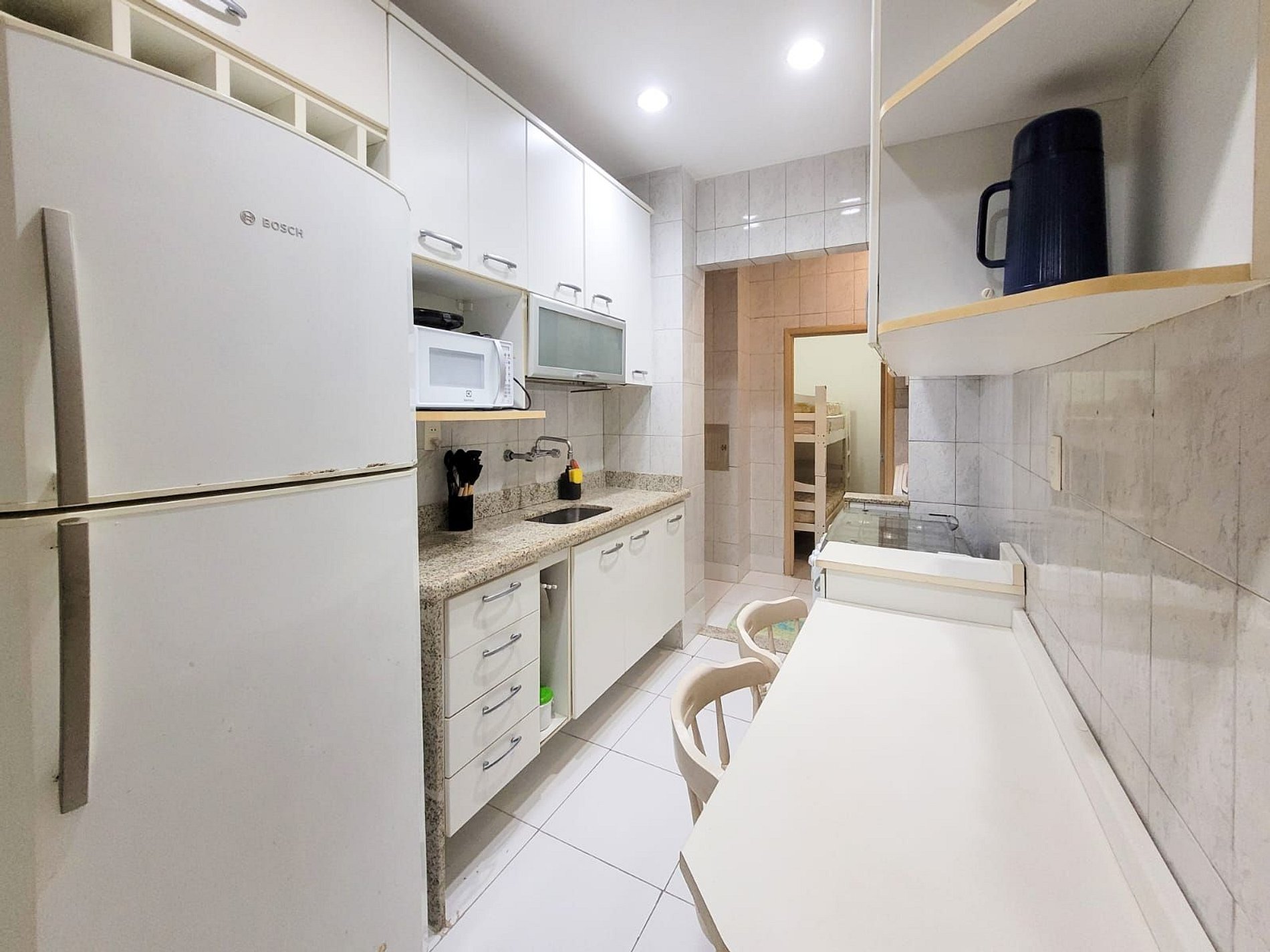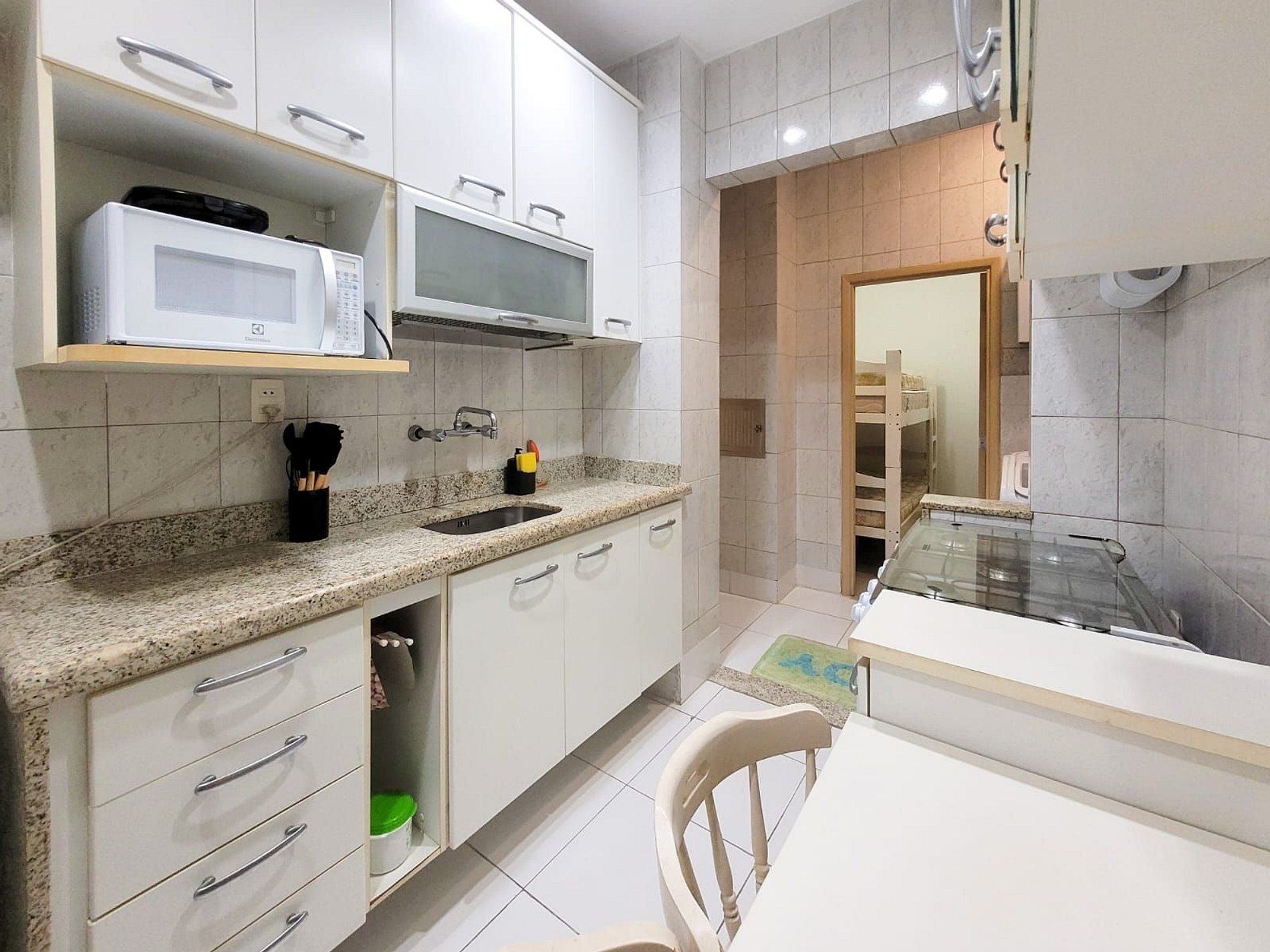 O apartamento oferece uma sala ampla e aconchegante, perfeita para relaxar depois de um dia de praia, além de uma cozinha completa, equipada com todos os utensílios e eletrodomésticos necessários.